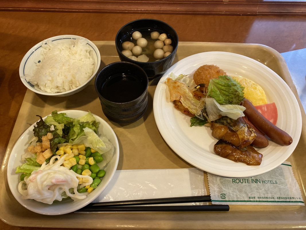 手足を伸ばして入浴できる大浴場があるので疲れも取れるのは長所で、朝食は他のルートインと同様種類は多いのですが、入口近くから食品を取る配置のためよく行列ができるのがマイナス点。他のルートインのように食品の配置を変えるだけで行列は解消できると思うのですが。1 / 4