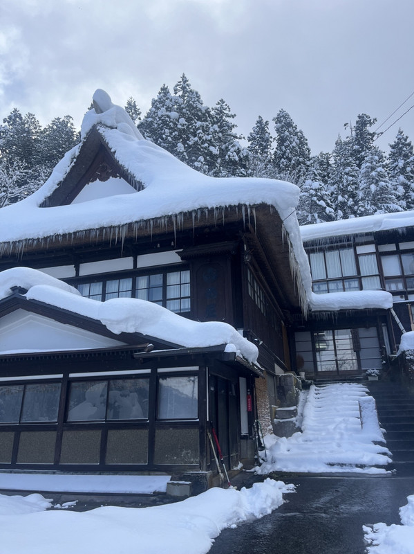 歴史感じる囲炉裏と雪景色。源泉かけ流しの老舗旅館
