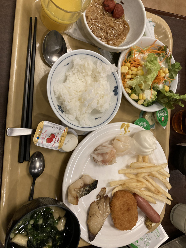 朝食は無料ですが、品数もあり美味しかったです。1 / 2