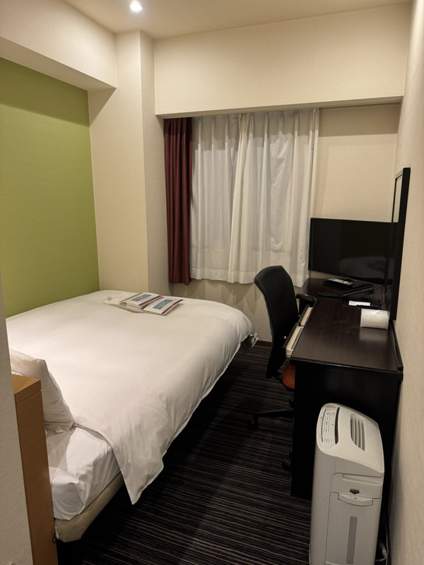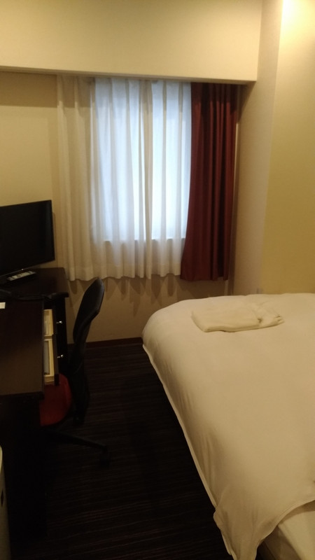 椅子がでかい。背もたれがでかい。本当に邪魔でした。窓側への移動は常にカニ歩きでした。ビジネスホテルなので部屋が狭いのは問題ないのですが、部屋の大きさに合った椅子にしてもらいたいところです。邪魔で邪魔で、使わないときは入口の方に放り出していました。