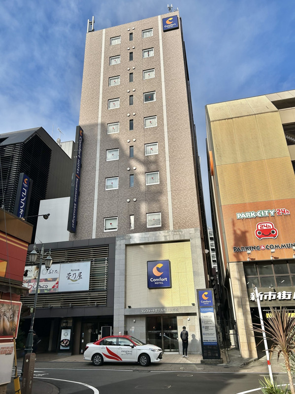 2022年11月の熊本出張時に泊まりました。レンタカーで行ったのですが、ホテル自体には駐車場が無く(本当に繁華街の中心)隣に提携駐車場はあるものの、満車で停めるところを探すのに苦労しました・・。車でなければ良いかと思います。ただ、熊本市街の渋滞はひどいので、時間に余裕をもっていったほうが良いです。あらかじめ駐車場の場所は調べておいたほうが良いですね。