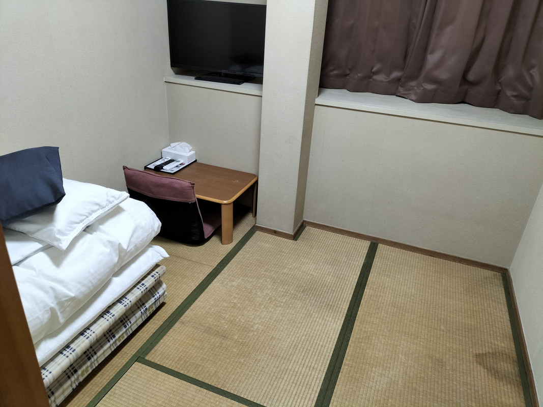 和室の部屋は狭く、布団を敷くスペース程しかないのだが、バストイレ・冷蔵庫・電子レンジまで各部屋に用意されている点は良い。