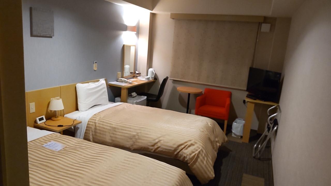 「近江八幡駅」から線路沿いに歩いてすぐの場所にあるホテルです。ツインルームは2種類あり、「ツインハイクラス」は、エキストラベッドを入れて使用できる程のゆったりとした広さの部屋でした。朝食は品数はそれほど多くありませんでしたが、カレーが美味しかったです。