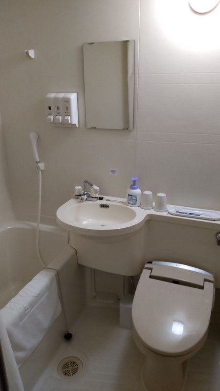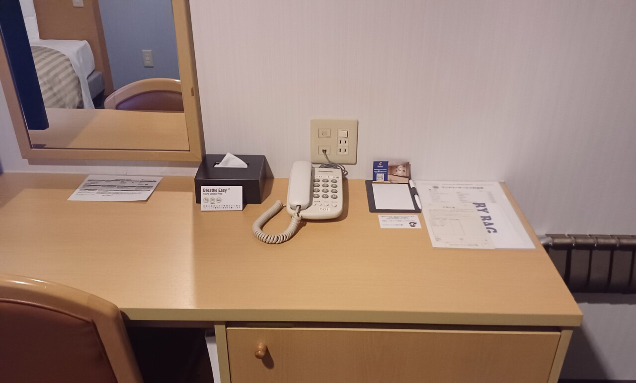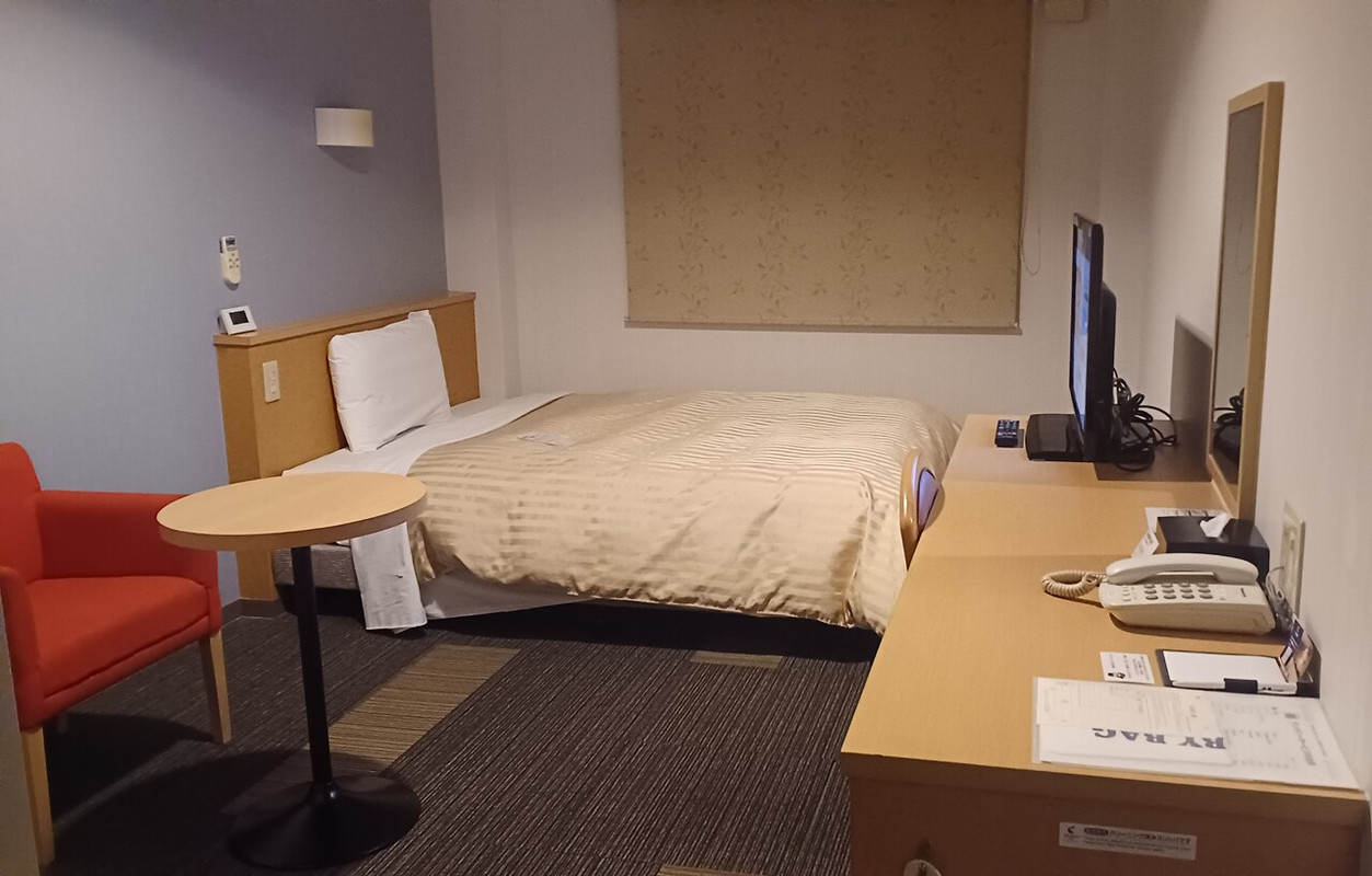近江八幡駅北口から左手へ線路沿い徒歩3分ほど。少し電車の音が気になるかな。家庭的なフロント。エレベーター1基。部屋は広く、傘を干してスーツケースを広げてもスペースに余裕あり。アメニティ等は最低限のビジホのイメージ。朝食の焼きたてパンが5種類ほどあり美味しかった。