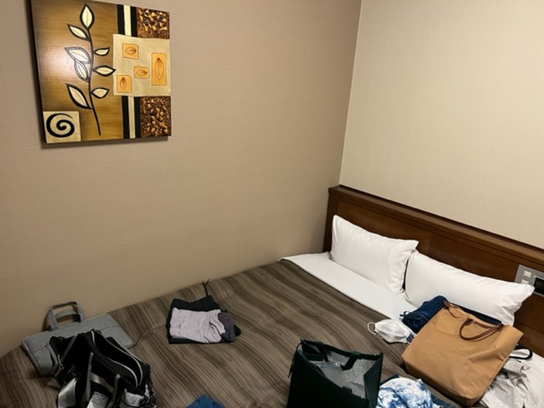 部屋は前日泊まった四ポイントに比べると約3分の1ほどの広さでベットは全くスプリングがない畳の上に寝ているようです。