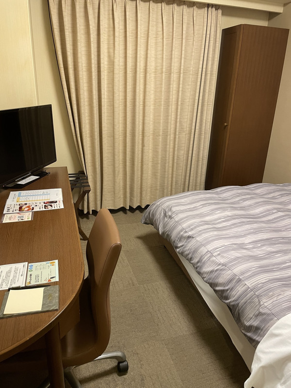 延岡駅前のビジネスホテルです。駐車場は有料となっていましたが、フロントでサービス券をもらうと、提携駐車場でも無料でした。ツインのシングルユースでしたので、部屋は広くゆったりとしていました。ベッドはセミダブル。無料の朝食にしては充実していました。フロントの方の説明がちょっとわかりづらかったです。
