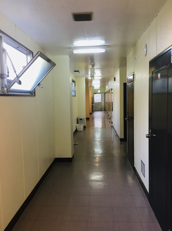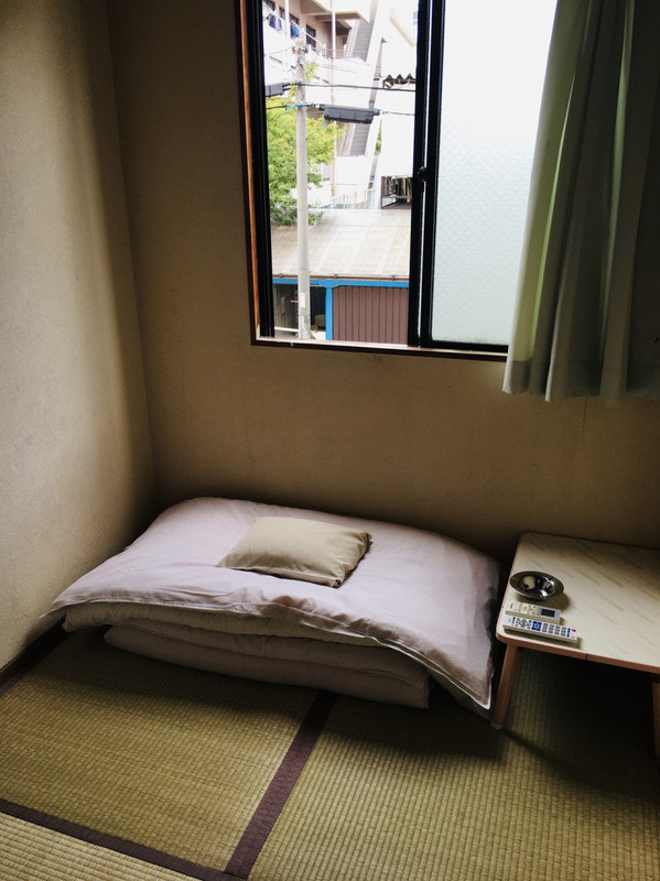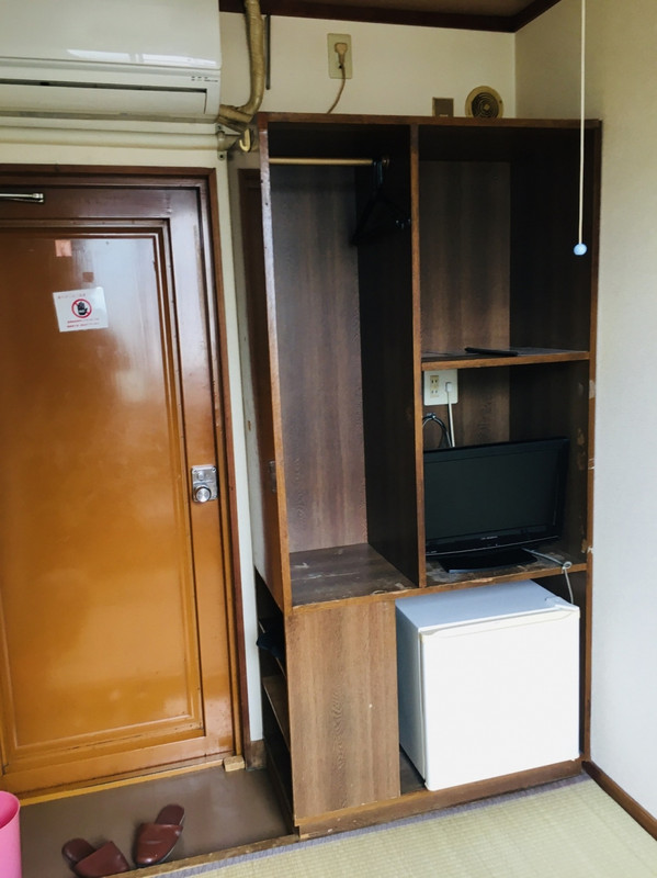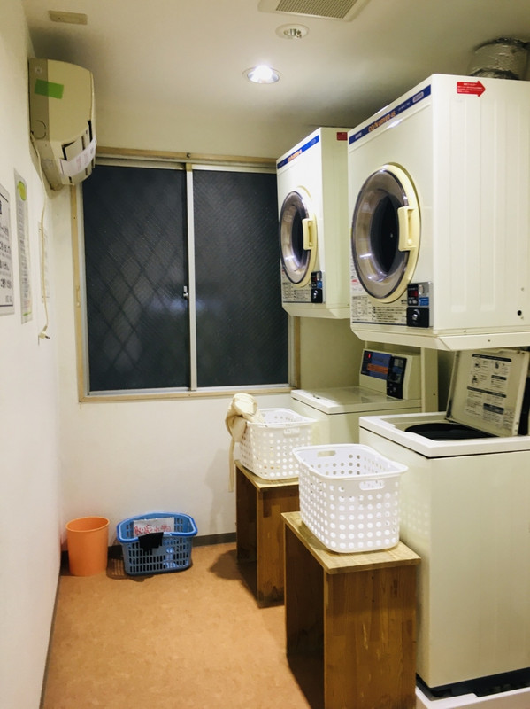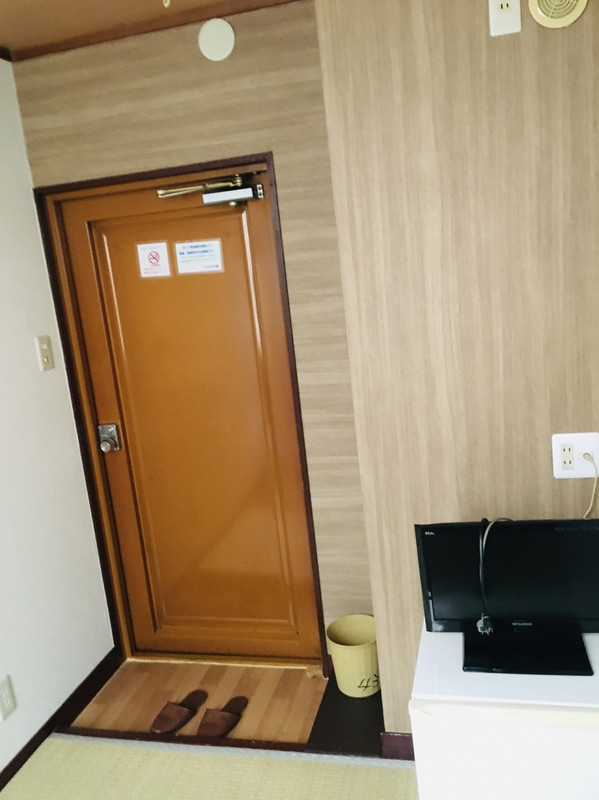 フロント付近で靴を脱ぎ、部屋で靴を保管です。部屋は他の部屋も狭く、トイレ、風呂は共同ですが、シャワー室が1階に3つあり、隣接して洗濯機があり200円でした。宿泊者は1泊に付き、宿から徒歩2分ぐらいの銭湯に入れるのが良いです。