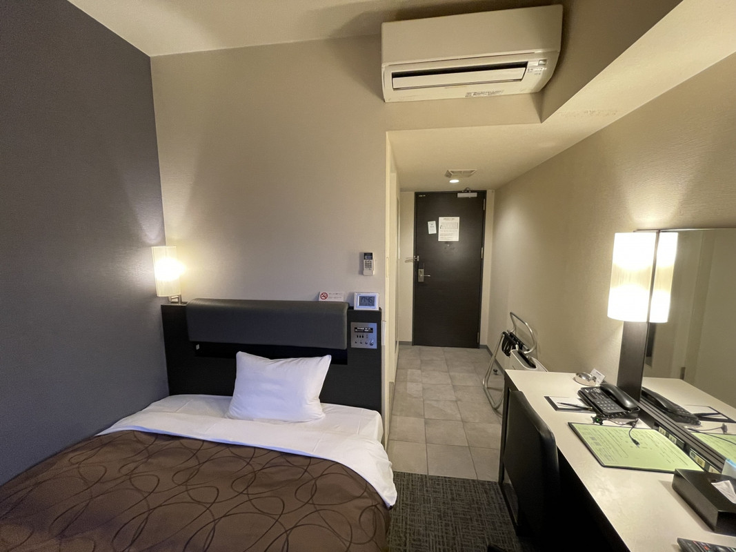 1Fがコンビニでフロントは2F。館内・客室とも清潔で、シングルルームも窮屈な感じは皆無。JR静岡駅から徒歩10本ちょっとだが、周辺には青葉おでん街、青葉横丁や老舗居酒屋などもあり、これで朝食付き1泊5000円台は素晴らしい。