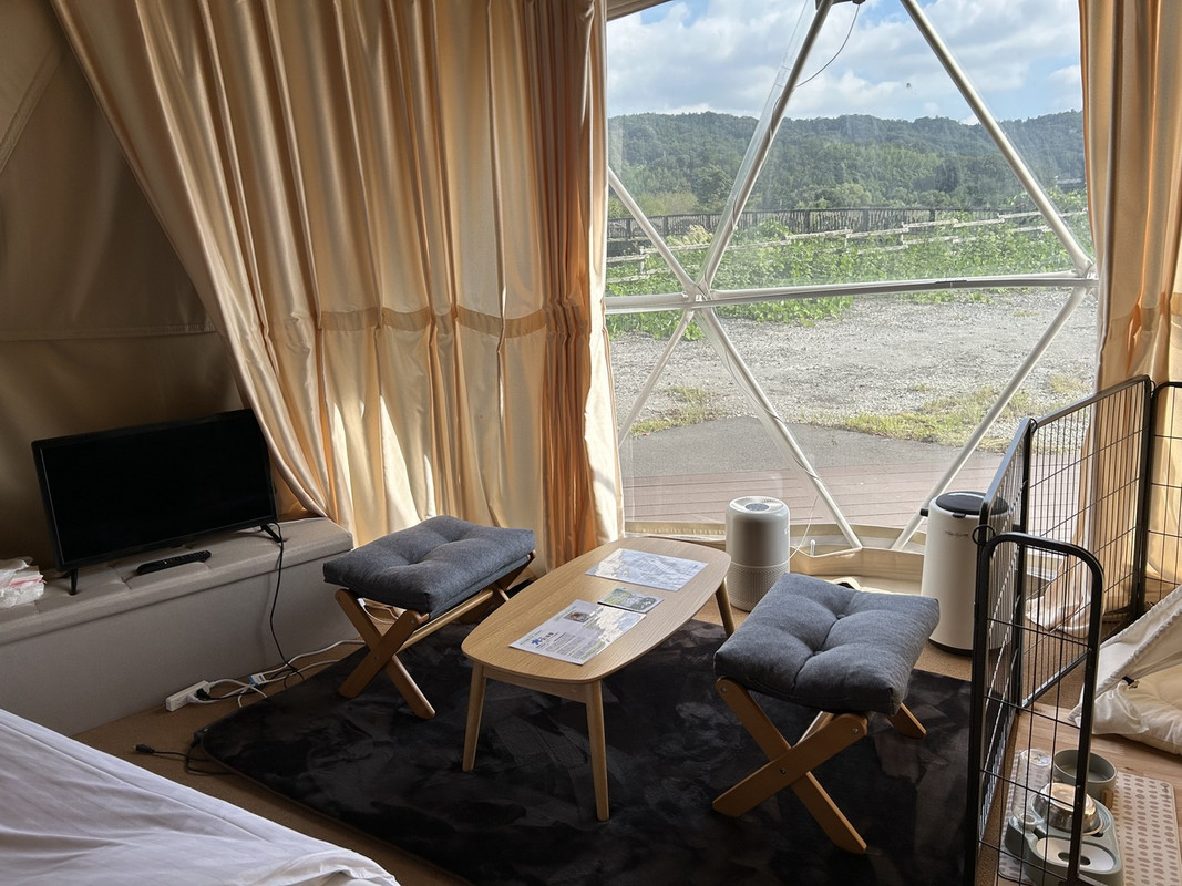 今回は、1日1組限定のワンコ可のグランピングテントに宿泊しました