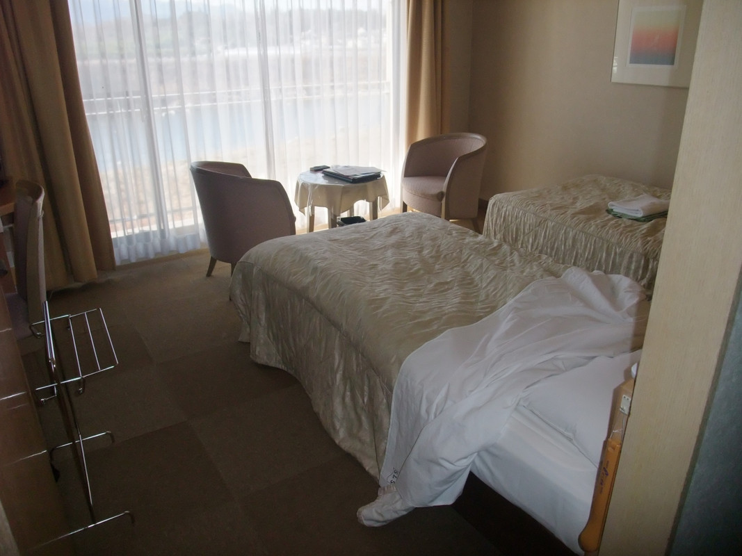 部屋は、洋室のツインとテーブルと椅子で、普通の広さです。