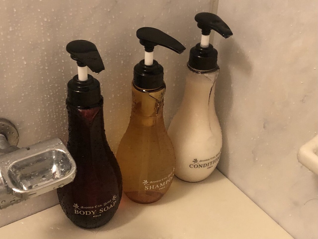 いつも思うのが、バスルームのアメニティが素晴らしい!POLAのアロマエッセを使用していることです。