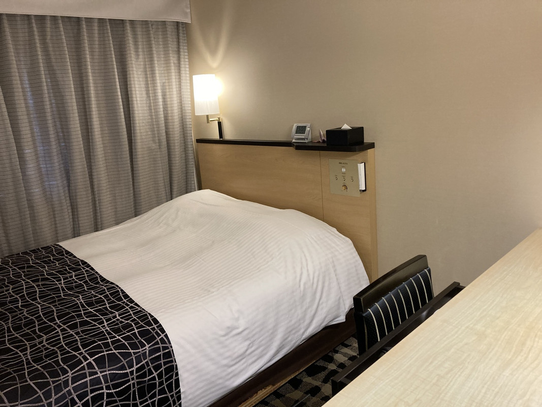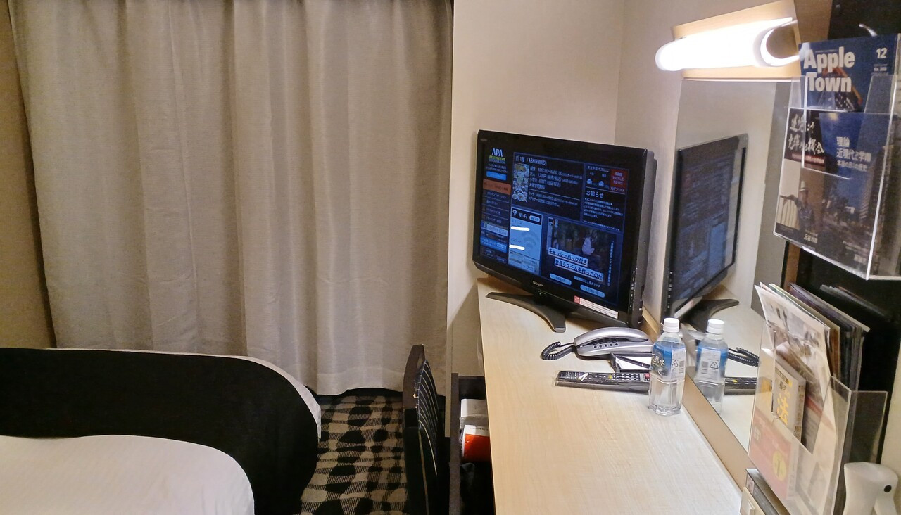 他のアパホテルを利用したことがありますが、こちらは古い感じです。近くにドンキホーテやローソン、さらにヤマト運輸の営業所があるので、買い物や荷物の宅配には便利です。ベッドの下に収納スペースがあるアパホテルもあるので、こちらは荷物を置く場所がないのが残念でした。