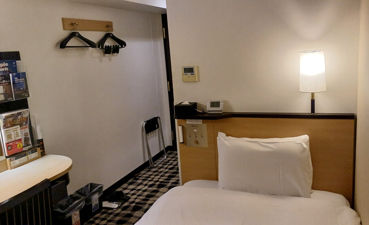 シングルルームに泊まりました。部屋はセミダブルになっていて、ベッドは十分な大きさ。ただ、部屋の広さ自体はさほどではなく、スペースにあまり余裕はなかったです。私は荷物が多くなかったので不便はなかったですが、大きいキャリーケースだと拡げるには多少不便かもしれません。ただ、部屋のきれいさ、清潔感はしっかりとしていて、バスルームもきれいで快適でした。