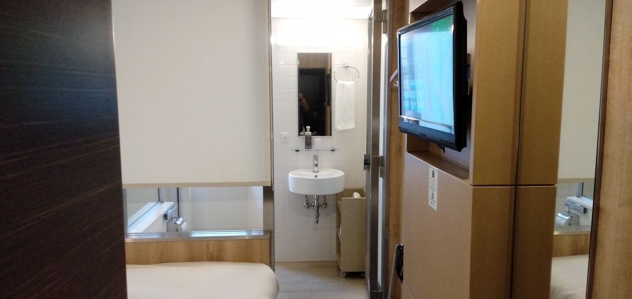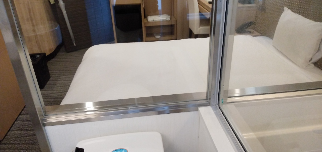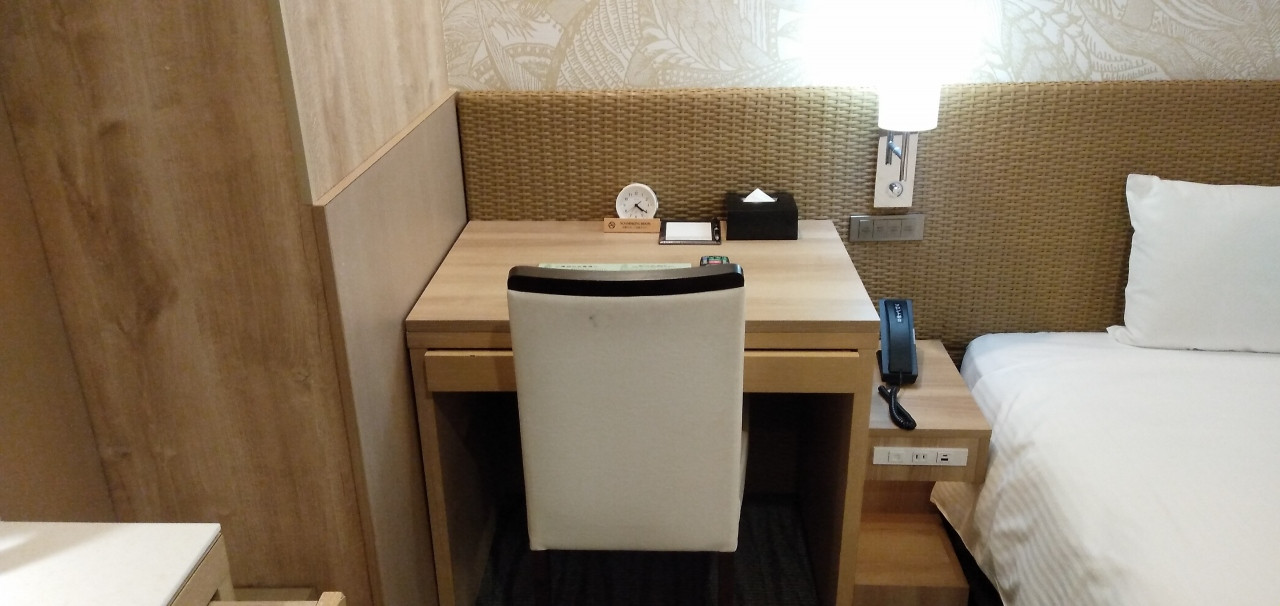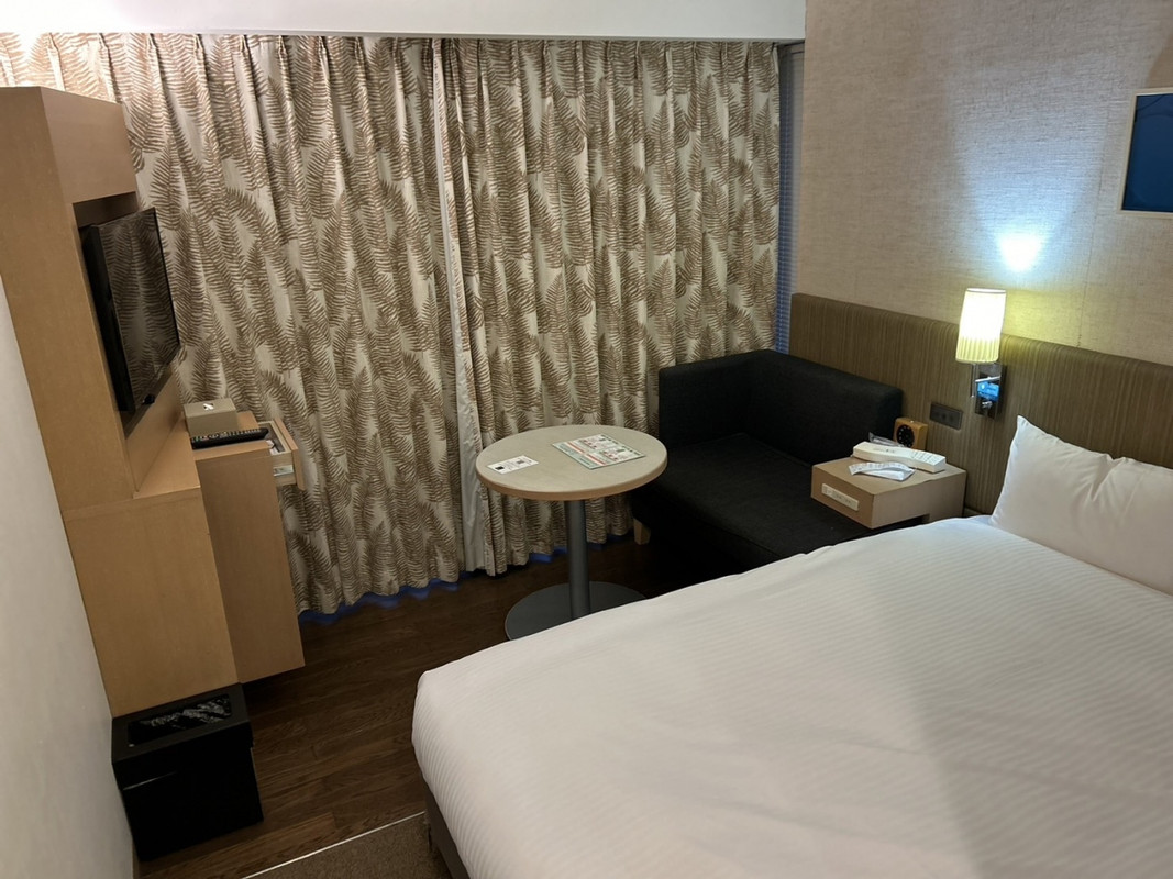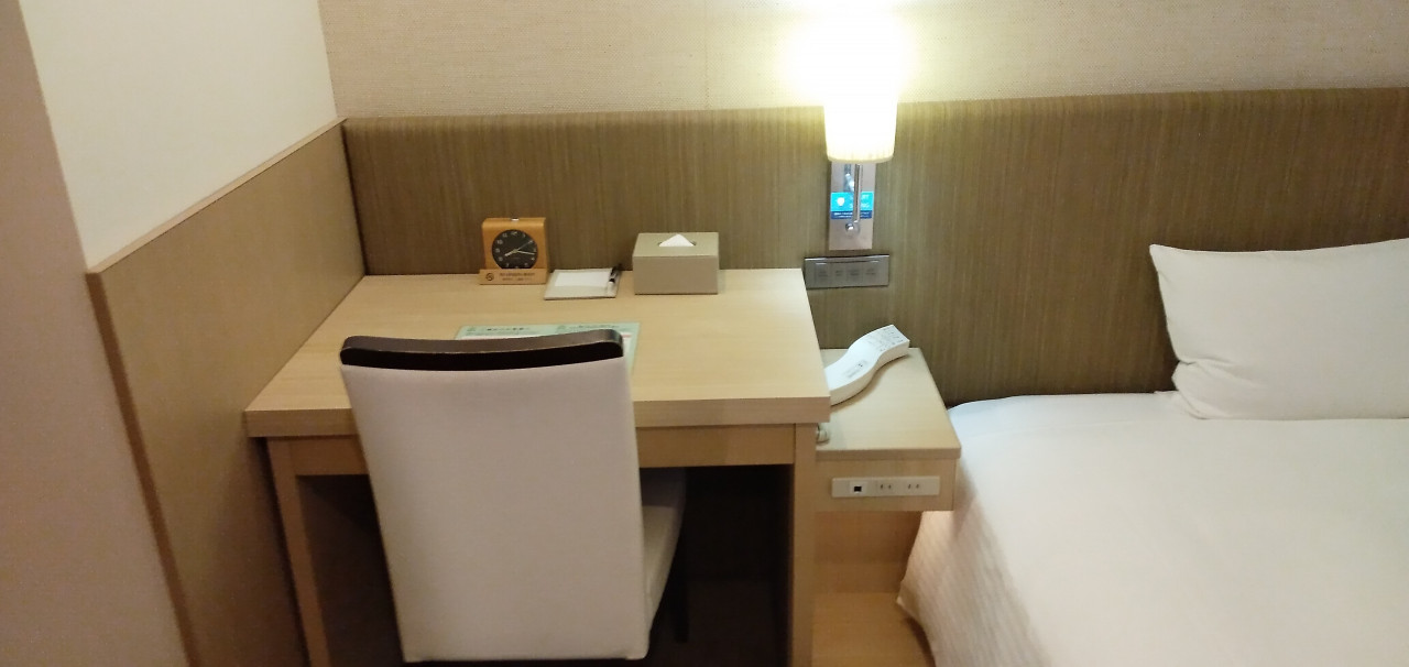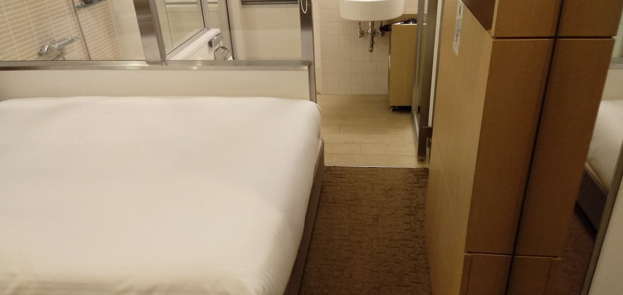 部屋の広さ・ユニットバス・ベッド・朝食、いずれも標準的なシングルルームです。コンビニは同じ並びにセブンイレブン、道路挟んだ向かい側にファミマがあります。朝食会場が狭いので行き交う時にちょっと面倒です。自動チェックイン機とフロントの方の対応は良かったです。収納の棚が多いのは助かりました。