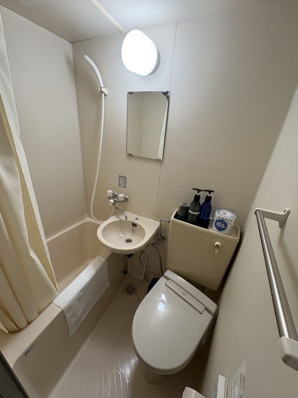 ユニットバスも狭く、朝食の弁当も寂しい印象でした。