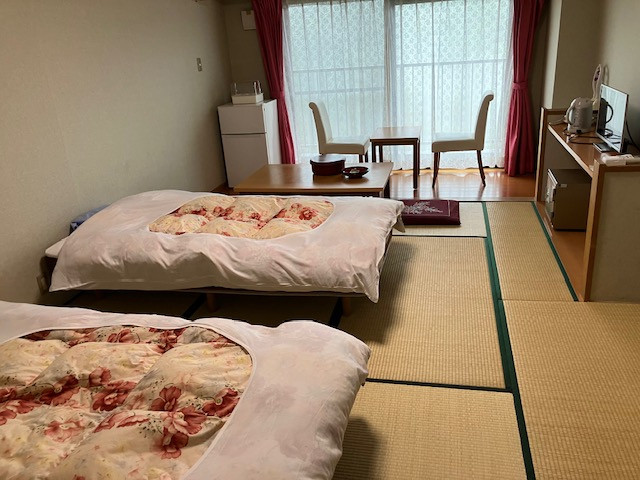 以前より料金がかなり上がったので、食事が少しは良くなったのかと期待して行きましたが…相変わらず種類は少なく、美味しくなく、アルコールの種類も少なく、コーヒーは朝のみ、朝食はソフトドリンク無し、ソフトクリームは指定の15分間にスタックが小さな紙コップに入れる1杯だけでした。部屋は眺めは良くWi-Fiも使えるようになっていましたが、洗面台の下に水がこぼれていました。お風呂は広くて、12:30~翌朝9:00と入れますが、脱衣場のゴミは午後から朝までそのままでした。湯畑への送迎バスがあるのは嬉しいですが、コスパは悪いです。