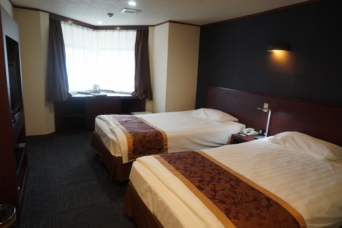 一人で泊まったのですが、ツインタイプの部屋。街を見下ろす悠々とした部屋でゆっくり寛ぐことができました。