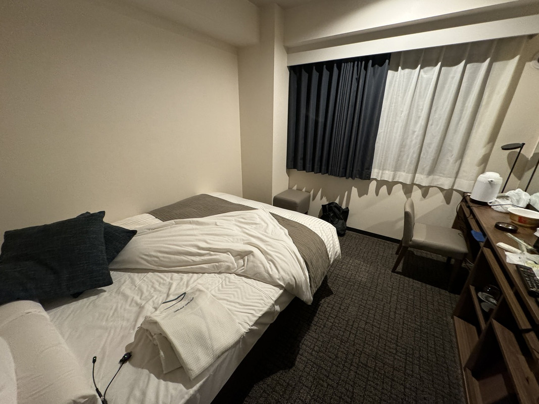 シングルでの利用でしたがベッドはダブルで広かったのですが、ユニットバスの浴槽は狭かったです。