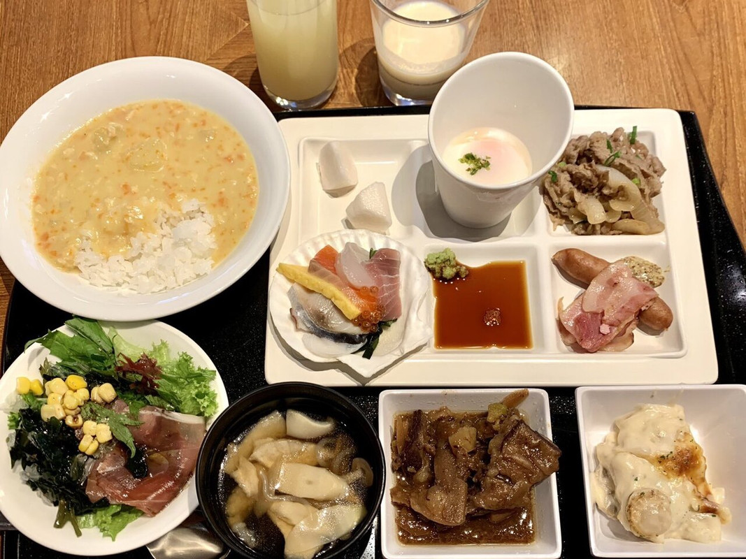 JR青森駅から徒歩圏内にあるホテルのひとつです。以前JALシティ宮崎にいったときに朝食がとてもよかったので、JALシティ青森の朝食もいいんだろうな〜と思って行ってみると…期待以上でした!ホタテたっぷりのメニューやお米が青天の霹靂、そしてサプライズだったのがグラスが津軽びいどろだったことです。また利用したいです。