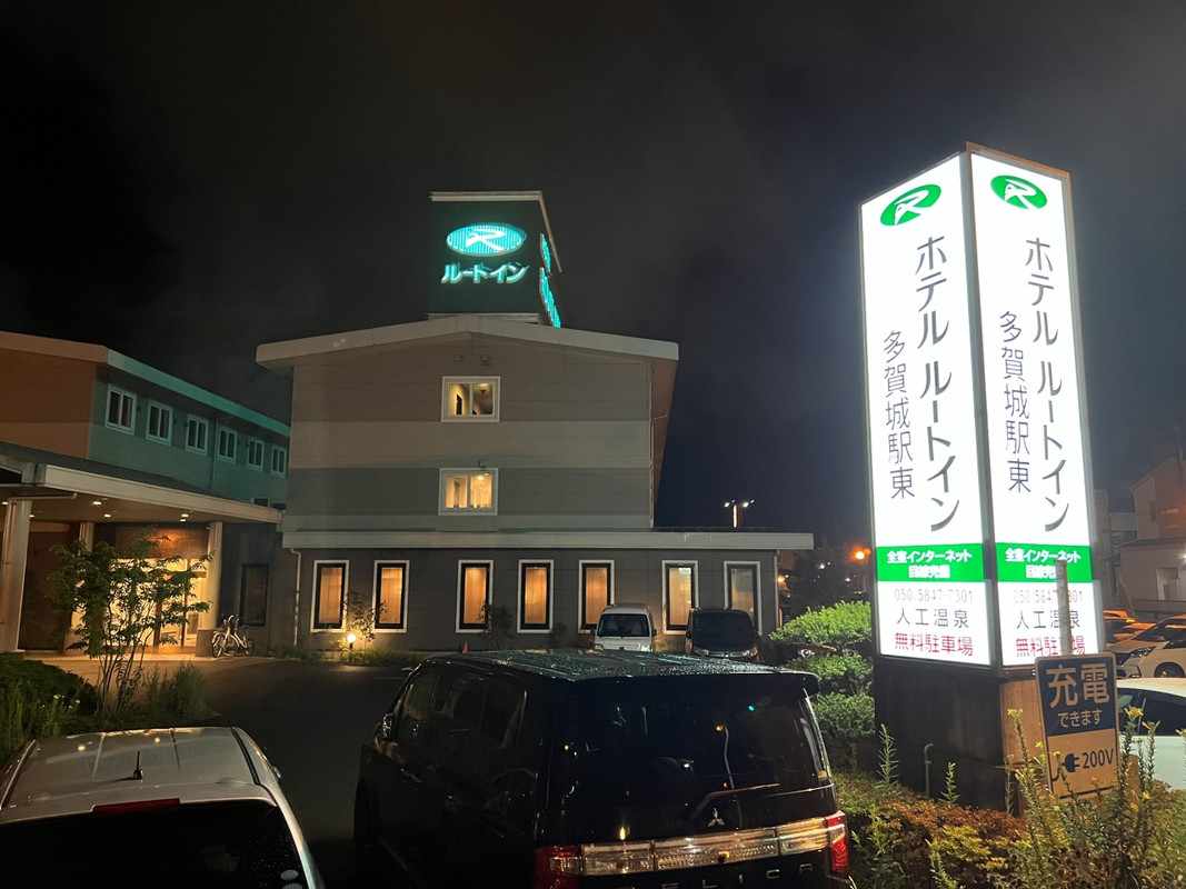 ルートインのホテルには珍しく3階建て。もとは何かの寮か保養所?と感じさせるたたずまいです。でも,低層なので,エレベーターの待ちがないのは楽でした。1 / 2