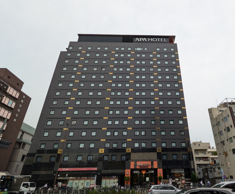 14階建ての大きなホテルで、外観は一目でわかるアパホテルらしいデザインです。