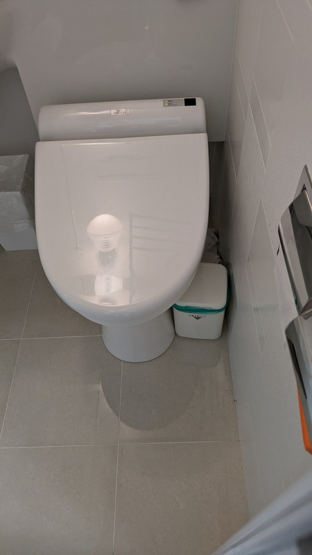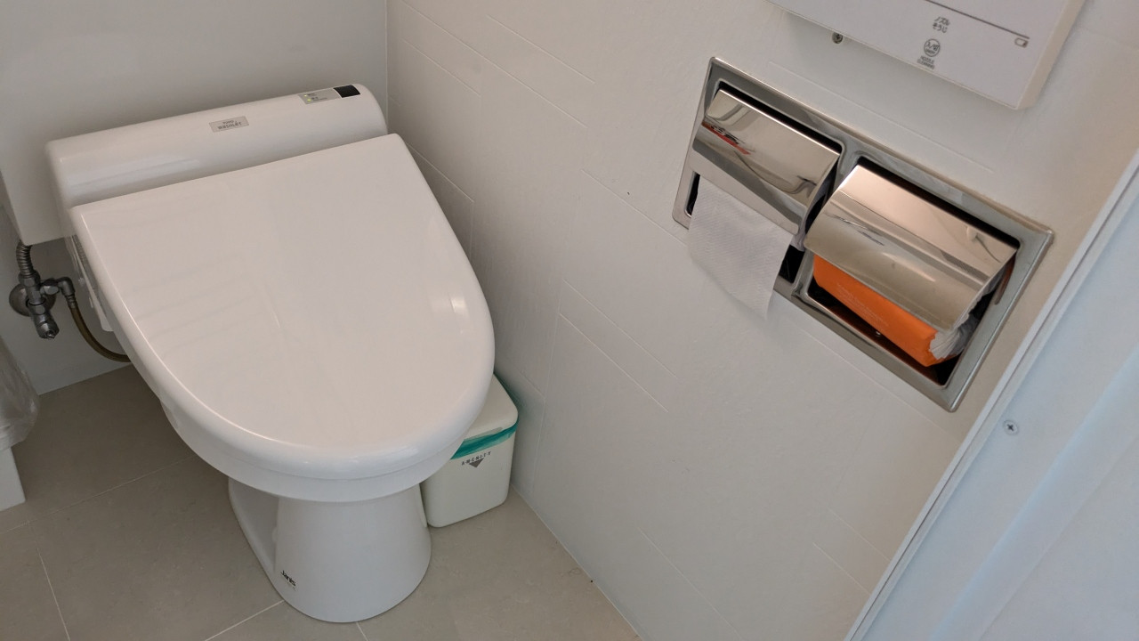 平均的な日本人の私でも狭く使いづらかったので、体格の良い人たちは便座に座ると体は壁に当たるのではと思います。