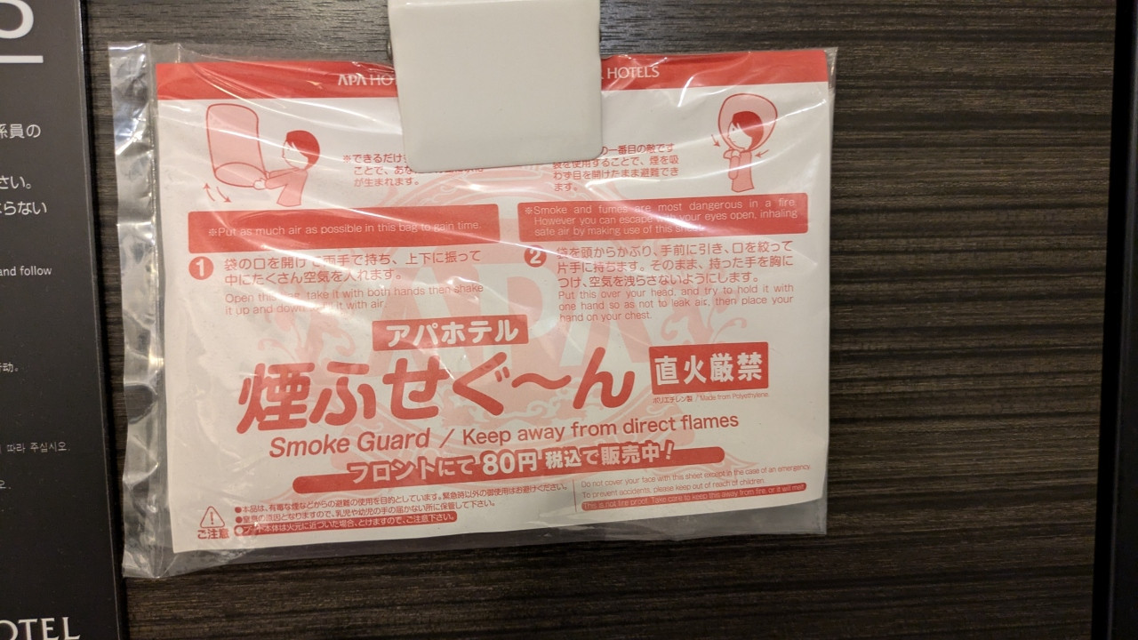 今年も、いくつかのアパホテルに宿泊しましたが、巣鴨駅前店以外では有りませんでした。使うことはないことが望ましいのですが、新しい試みとして、もしもの時に安心です。1 / 5