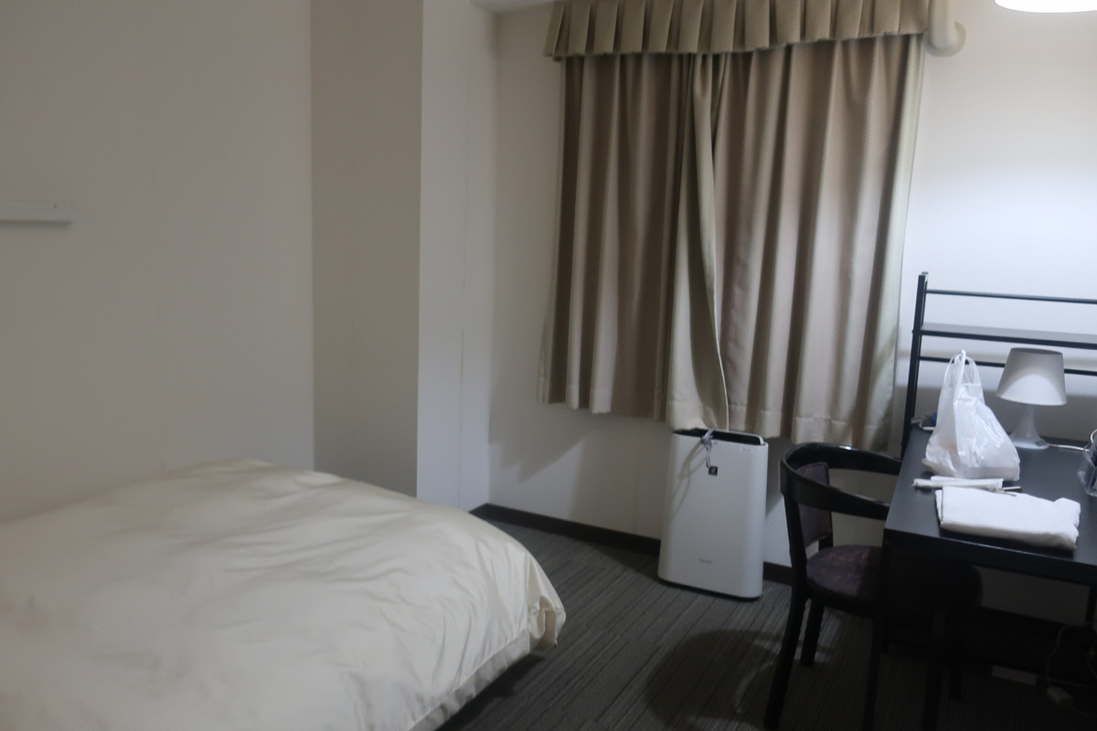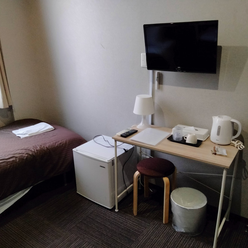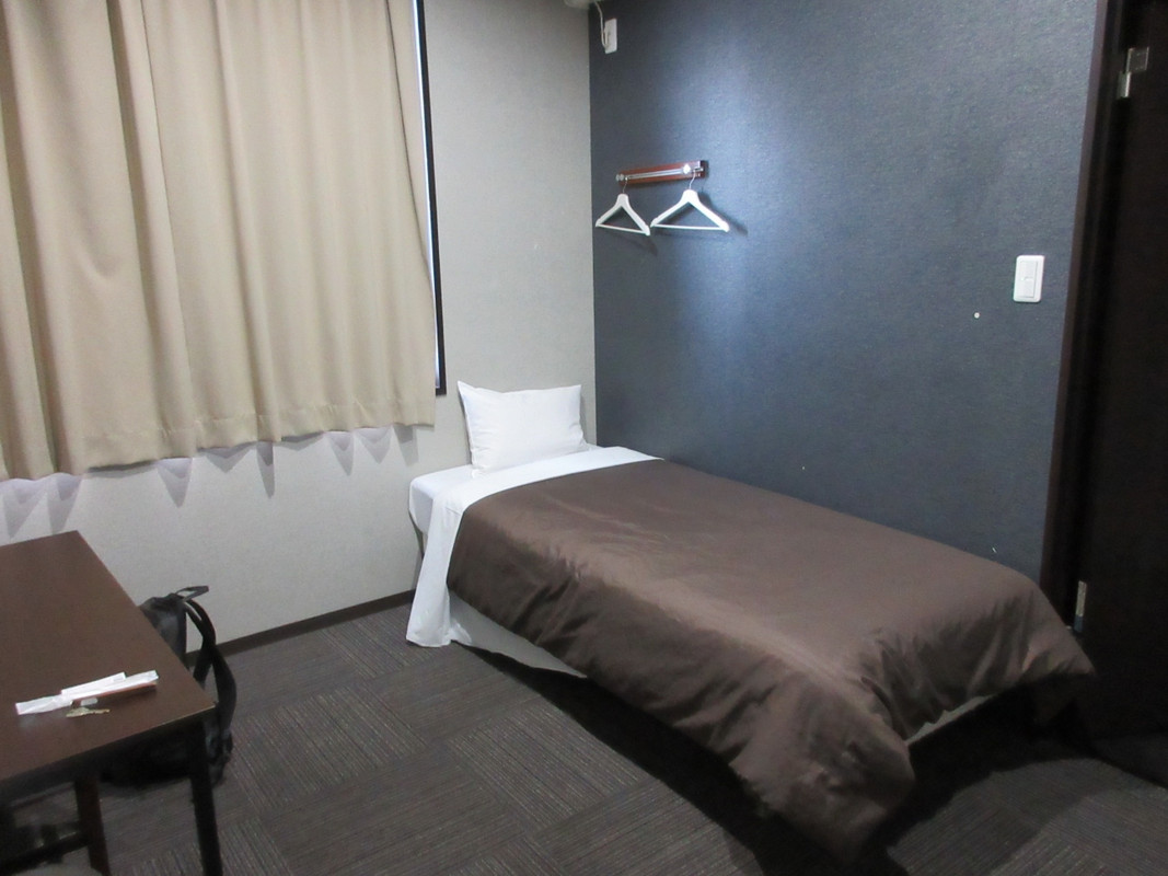 豊橋駅から徒歩10分程度の豊橋市役所近くの立地で、素泊り/シャワーブース/スモールシングル(3,740円)を利用しました。