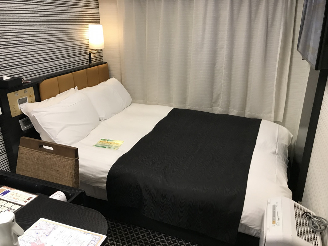 シングルルームに泊まりました。部屋は正直言って広くはないです。ただシングルといってもベッドサイズはセミダブルで大きく、寝るぶんには十分に快適でした。デスクなど設備は整っていてさすがアパホテルという印象ですが、広くはないので大きなキャリーケースを開くにはやや不便かなとは感じました。清潔感に関してはかなりしっかりしており、バスルームも綺麗でした。そのあたりもさすがアパホテルです。
