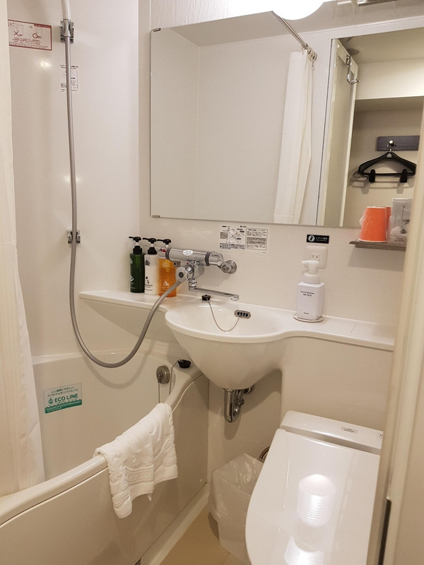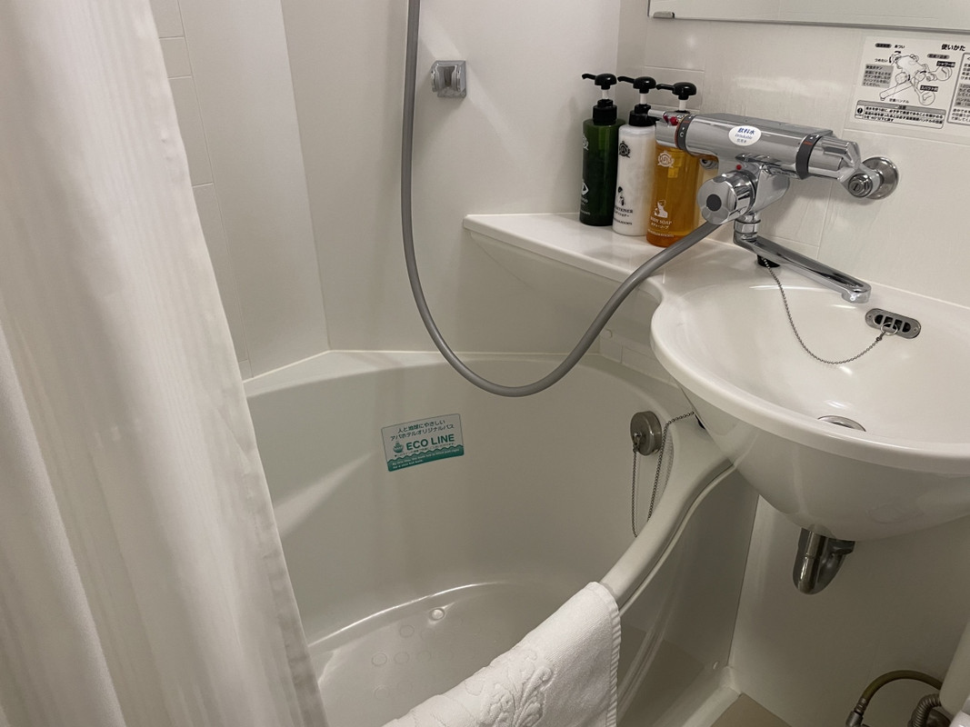 全体的に狭く、バスタブも狭いし洗面所のスペースも狭いのでスキンケアとかいろいろある女性は大変かも。