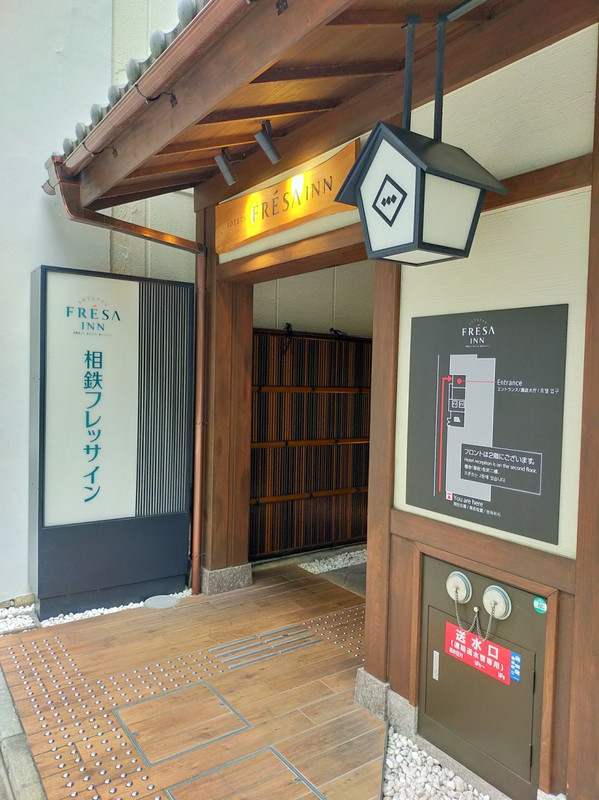 田中長奈良漬の二階にありますが、奈良漬店鋪の横から、和風の通路を通って入口へ、エレベーターで二階に上がったところがフロントでした。一瞬迷いましたが、奥行きのある京都風と捉えれば、なかなか面白い造りです。新しいので清潔感あり快適ですが、浴場等プラスの設備はありませんでした。銀座ライオンの夕食付はお得でした。鉄道会社系列のためにフロント横に横浜の鉄道のPRがありました。