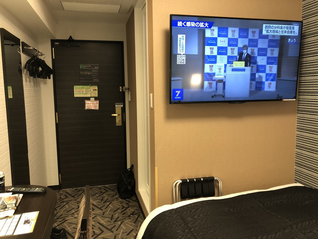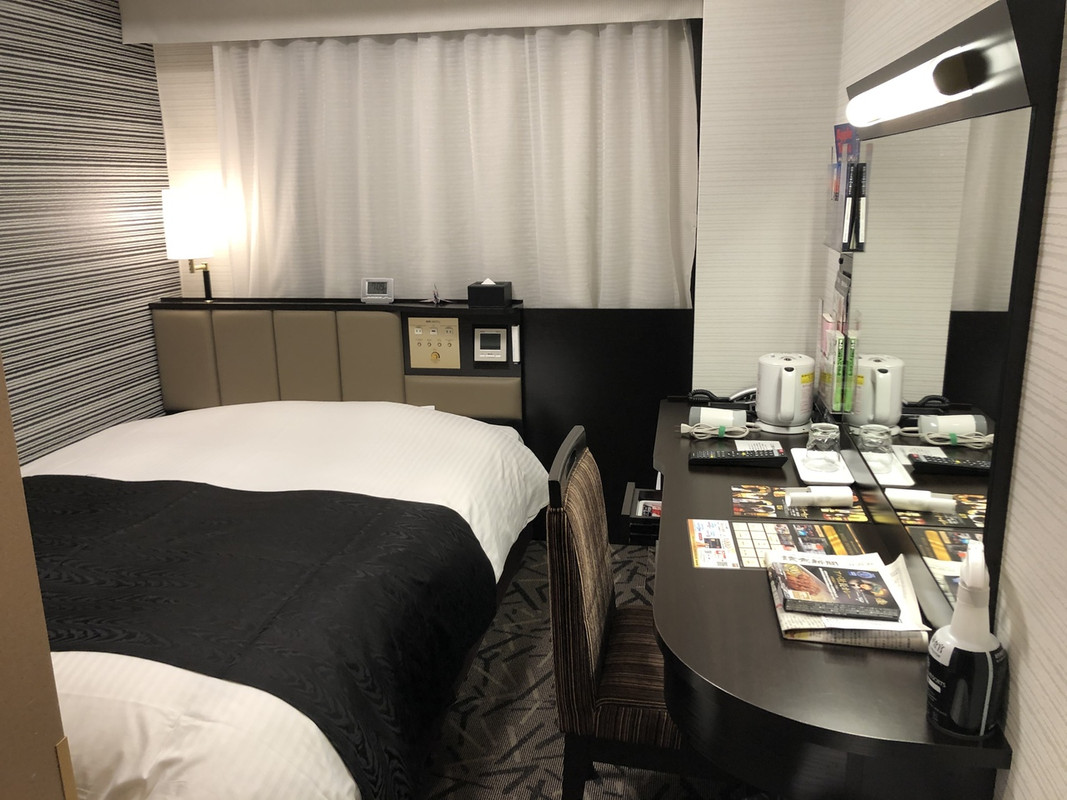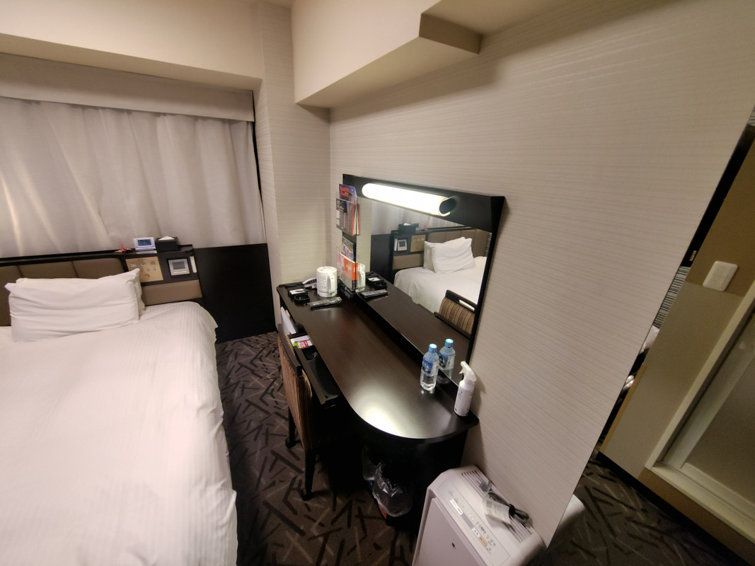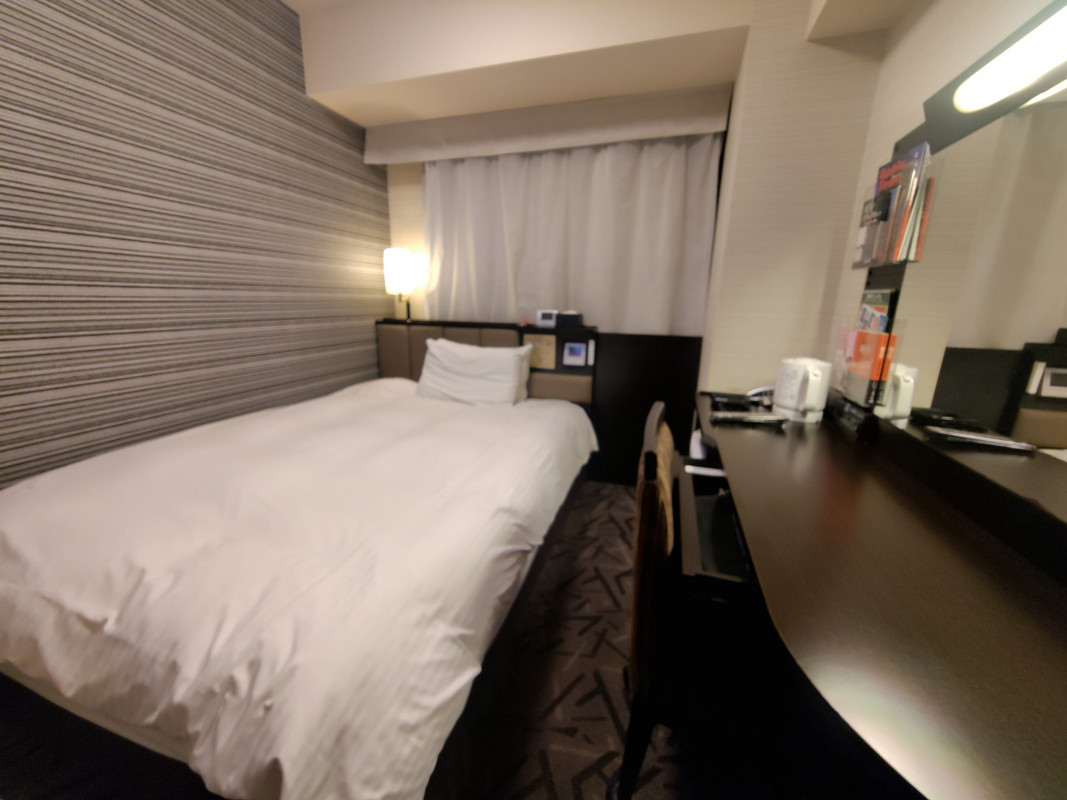 シングルに宿泊。ベッドとテレビが大きく、デスクが小さい、由緒正しき、安心と安定のアパ仕様。サービスに不足なく、居心地が良い。