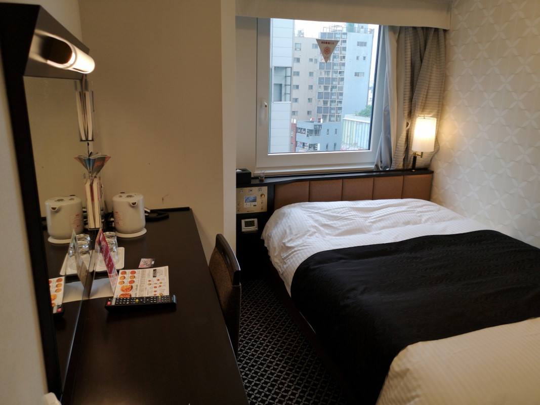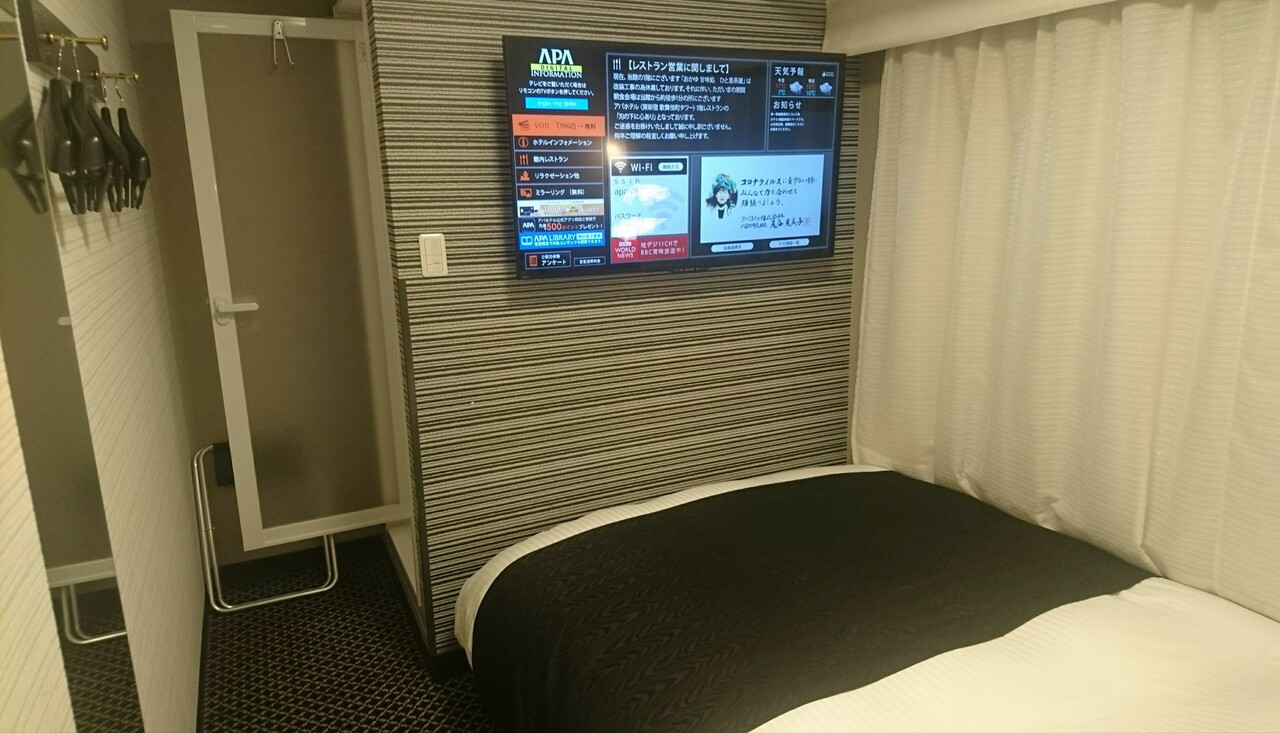 JR新宿駅からはやや距離がありますが、地下鉄東新宿駅を出て職安通りを歩くと2分ほど、便利なロケーションのホテルです。アパホテルの例に漏れずシングルの部屋は狭く設備もシンプルですが、ベッド幅は大きめで寝るだけであれば十分満足できます。建物は比較的新しいので、清潔感があるところも良いです。歌舞伎町はすぐ近くなので飲食のあと戻るのにも便利ですが、その分周辺はやや騒がしいところはあります。