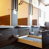 特徴は洗面台・ロッカー・シャワー・フリースペースとカプセルの動線上が非常にうまく機能した造りであることです!。