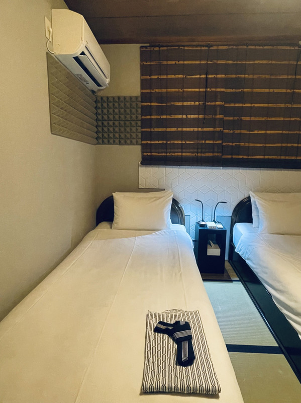 【部屋】狭くてカビ臭さあり。大きなスーツケースを広げるのは難しい。浴衣があるのはありがたい。電源とUSBポートが4つあるのも便利でした。エアコン以外に扇風機も押し入れにありました。