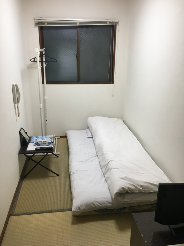 少し老朽化が目立つ古い建物でフロント前には飲み物やカップ麺の時代販売機があり、ウォーターサーバーの水は無料で飲めます。風呂は時間制で風呂の前には談話室がありました。部屋はミニテレビ、ミニ冷蔵庫があるシンプルな部屋でしたが布団がフカフカでした。