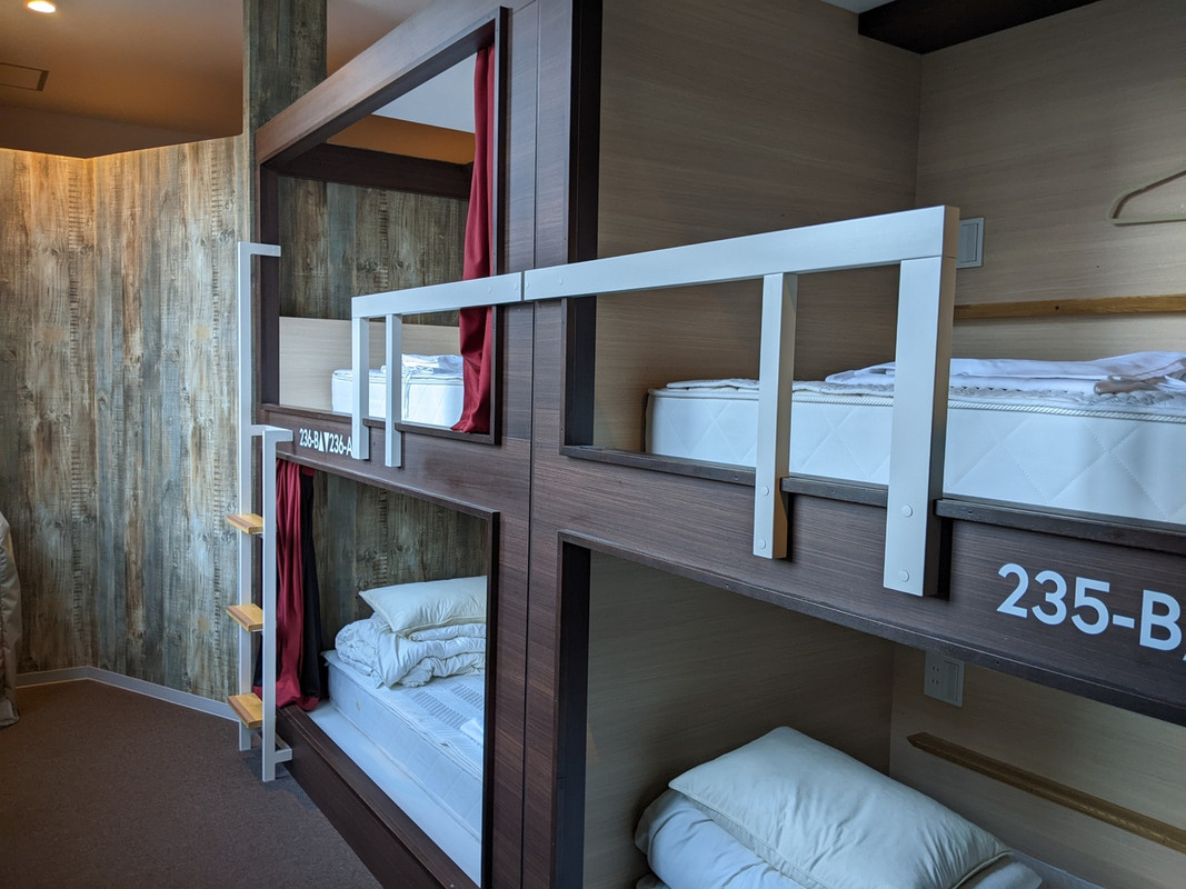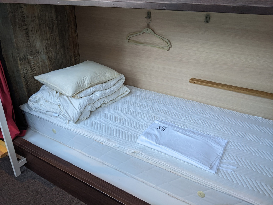 2段ベッド2つ分の半個室(天井部分に隙間あり完全にドミトリーと仕切られてはいない)に宿泊しました。空調、シャワーの水圧良好で快適だったのですがキッチンの掃除が甘く、湯沸かしポットの中も水垢で真っ茶色だったのが唯一のマイナスでした。