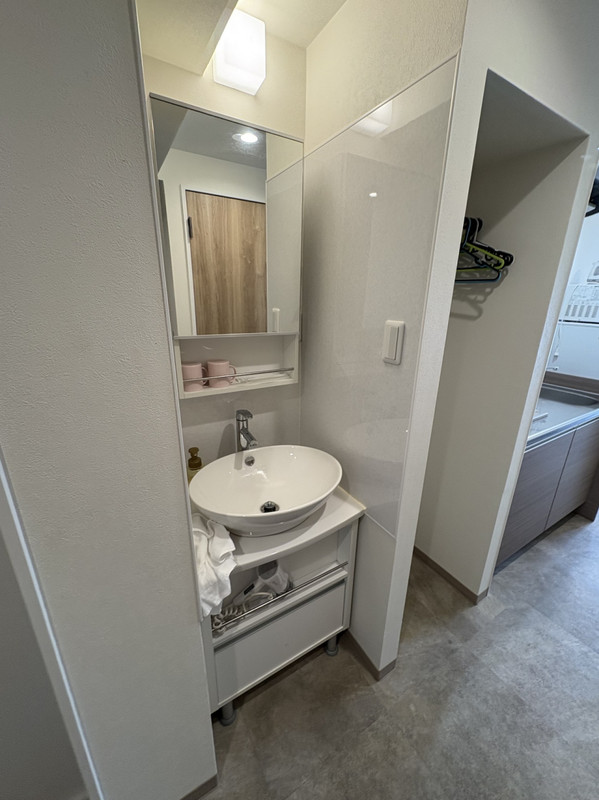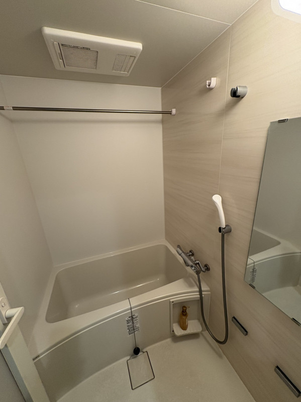 またなんといっても部屋に縦型洗濯機があり、浴室乾燥機があるのがポイント(洗剤はフロントで50円/個で買えます)。