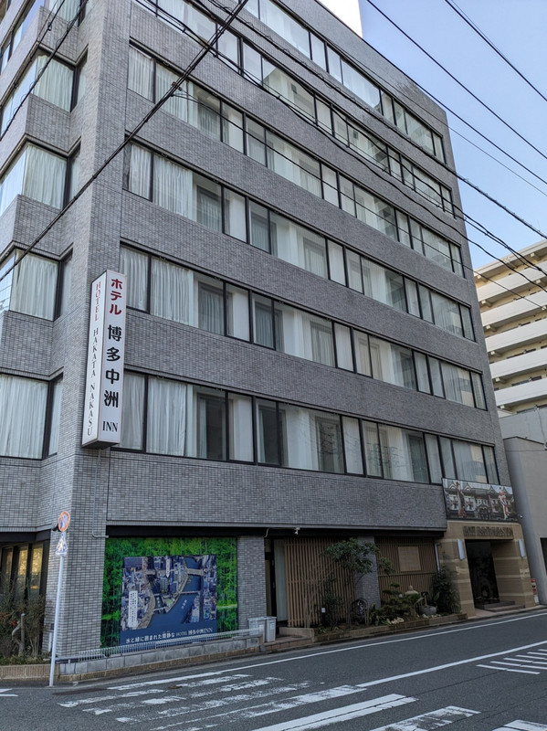 地下鉄中洲川端駅から徒歩5-6分程のところにあるビジネスホテルです。中洲の飲食店街などからは少し離れた閑静な場所にありました。新しいホテルではなかったですし、これと言った特徴があるホテルでもなかったですが、コスパは良かったです。