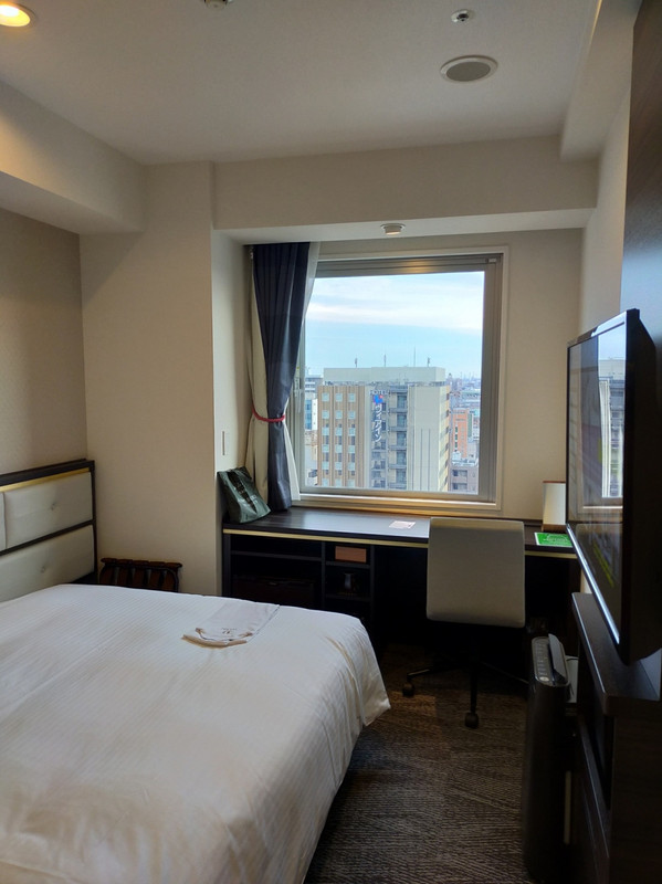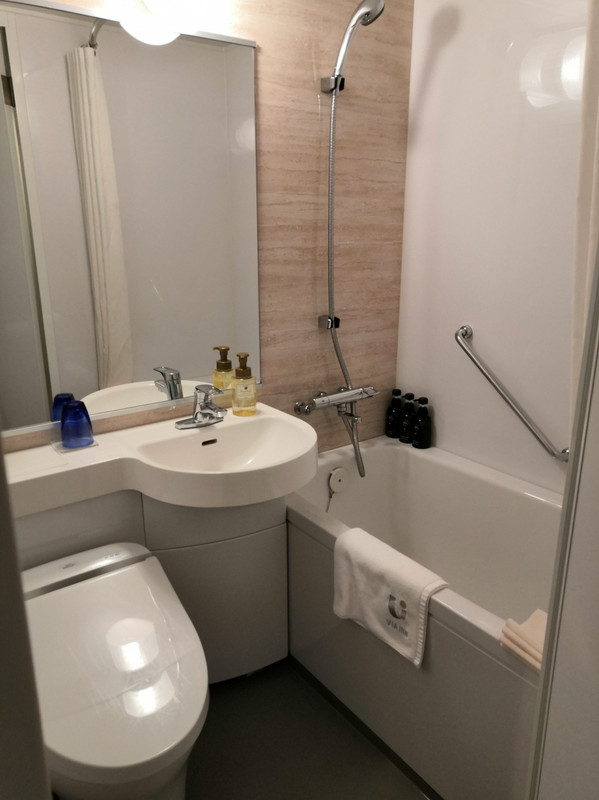 駅から 歩いて5分ぐらい JR の乗り場までは 7分ぐらい。 エレベーターの前にアメニティグッズがあるが コーヒーや紅茶飲み物 のティーパックがあるのはありがたい。 テレビやベッドも大きめで寝やすかった。 バスタブは小さめだが洗面台が出っ張っていないので それほど不便ではなかった コンセントがたくさんあったので それはとても便利だった。 部屋やバスルームは 衛生的だった。