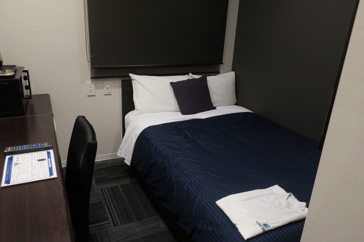 山手線で新宿と池袋のちょうど中間、高田馬場駅を出て早稲田通りを中野方面へ数分、やや通りから入った場所にある宿。ここのホテルグループは繁忙期と閑散期で料金差が大きいが、コロナの影響か、1泊4千円以下で泊まることができた。室内は広いとは言えないが、バスルームも含め今回の宿泊料を考えれば破格といえる広さ。しかしながら、低層階の客室では、外のスーツケースを引く音が聞こえるほど遮音性は低い。