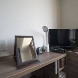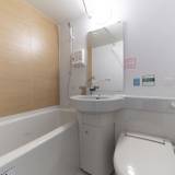 室内はコンパクト。テーブルも棚程度の広さで荷物を置いたり作業するには少し狭い印象だった。コンセントは手の届くところに3か所あり便利。浴室は普通だと感じた。