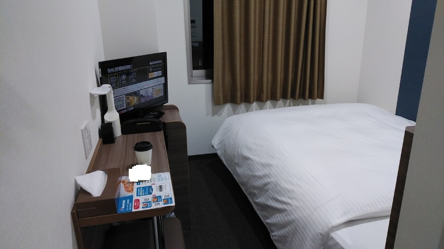 昨今のホテル価格高騰のため、10年くらい前と比べ倍以上値上がりした印象で個人的には割高感を感じた。とはいえ博多駅周辺でこの日予約できるホテルの中では最安値だった。BS、Wifi完備。1 / 3