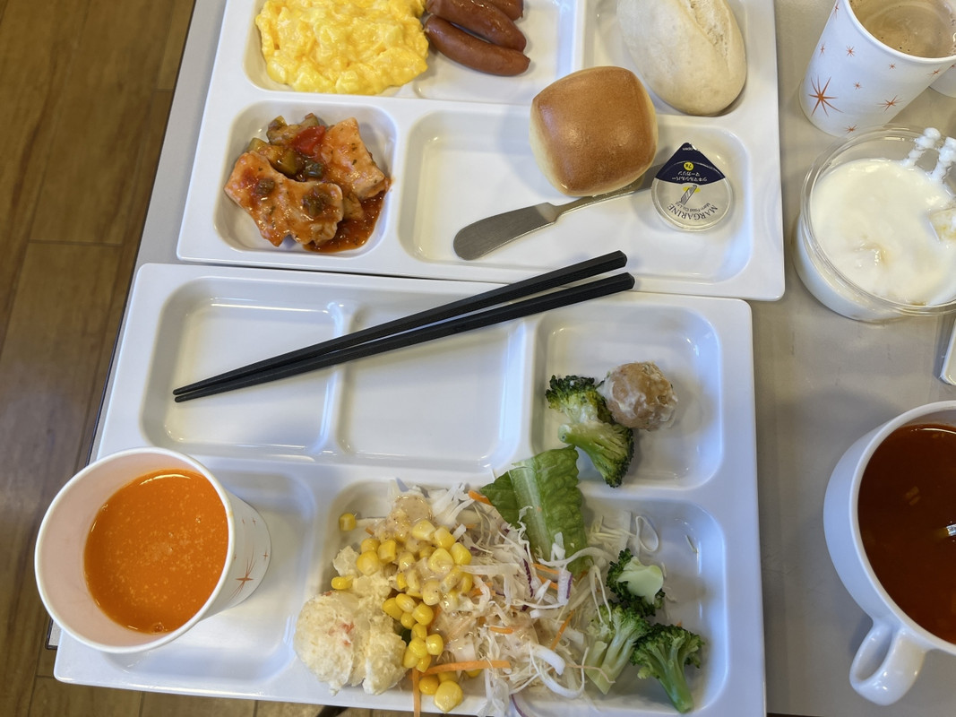 朝食バイキングはメニュー少な目でした。