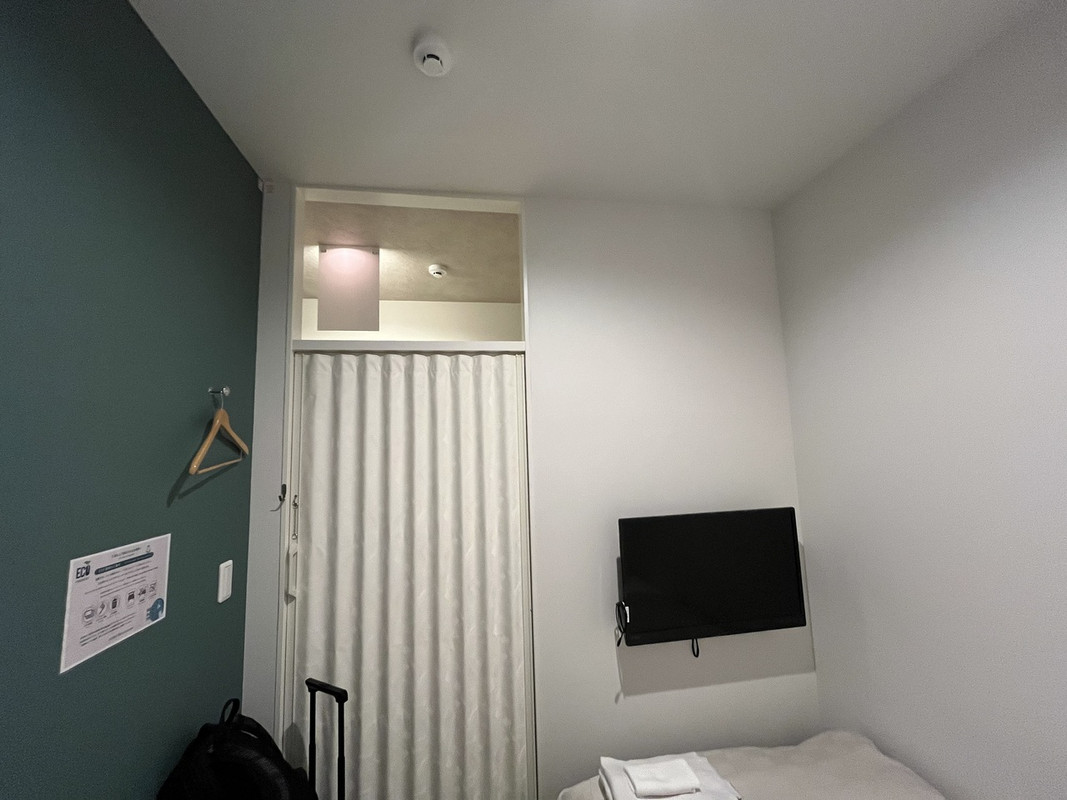 カテゴリーは簡易宿泊所になるらしく、ドアはカーテンドアで鍵がかからず、貴重品はロッカーに入れるという方式になります。