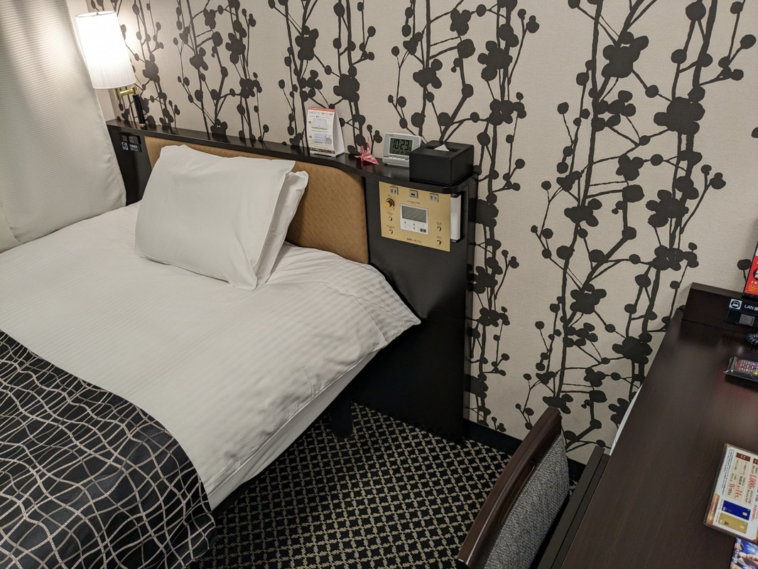 このアパホテルがそうなのか、利用した部屋だけなのかはわかりませんが、客室の入口が広めであったことが印象に残りました。入口が狭い場合、スーツケース置き場や靴の脱着にストレスがありますが、こちらでは快適に過ごせました。