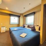 福山駅の西側にあるチェーンホテルで、福山駅から線路沿いを進み徒歩5分ほどのところにあります。客室はコンパクトで、部屋のほとんどがベッドでドアを入ってすぐベッドという印象ではありますが、設備としては充分でした。水回りなども含めて館内は非常にきれいでした。今回案内していただいた部屋は、新幹線も見える部屋でしたが、ガラスはワイヤー入りのガラスですので、眺望目的ではおすすめしません。