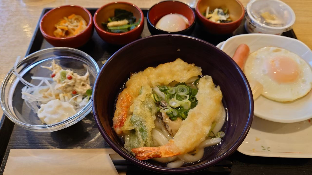 讃岐うどんなどの朝食バイキングと、露天風呂満喫の和風ホテル