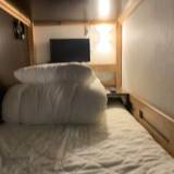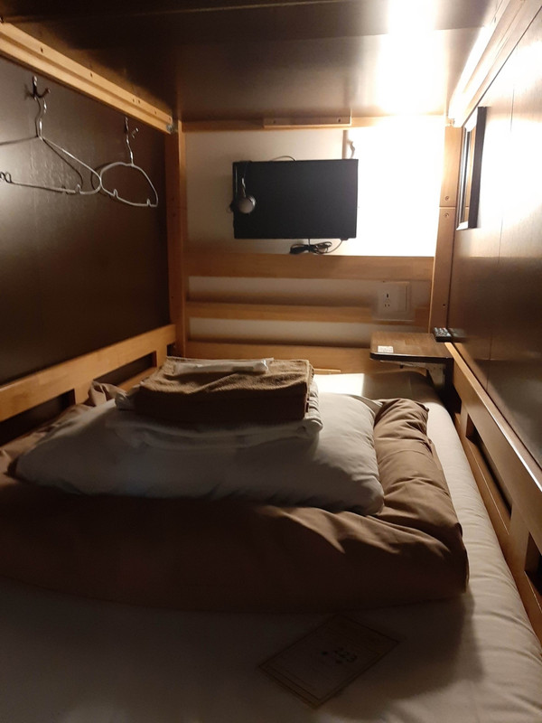 新橋の繁華街ど真ん中にありますドミトリー専門ホテルです。男女混合のベッドスペースのみのプライベート空間をカーテンで仕切っています。女性専用のサニタリーエリアもあったりしますが、ほぼ「筒抜け」です。バスタオル、フェイスタオル、バスローブ(というか薄いタオル地の「寝巻」?)、歯ブラシ完備。2月の宿泊で少々冷えました。
