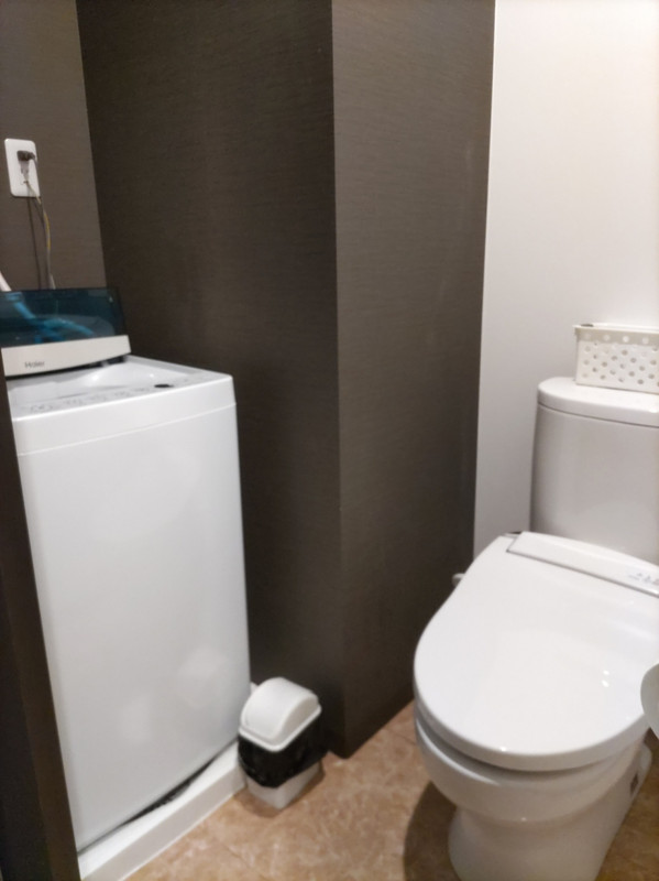 トイレと一緒のスペースには洗濯機も備え付けられていたので、長期滞在なら洗濯も可能?でも干すのは?1 / 3